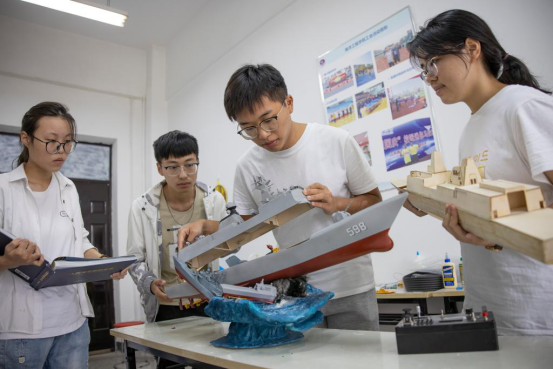 我院参赛队员,怀着积极的态度和必胜的信心,分工协作,合理规划,全身心地投入了日照舰的制作过程中。此前,队员们先参加了金陵区域赛D类(名船名舰仿真制作)比赛,与省内其他17支高校队伍进行角逐,我院“江海大日照舰”名列第二名,获省级一等奖。