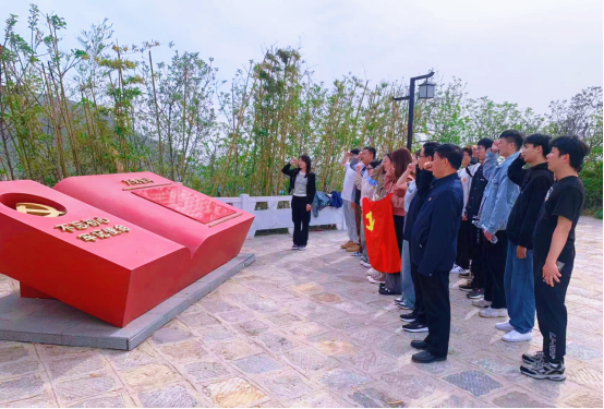 此次主题教育活动的第一站是白虎山爱国主义教育基地,在这里党员同志们共同见证了无数革命先烈的英勇斗争历史遗迹。离退休第十党支部的老党员们向学生党员深情讲述讲述了“东海特别支部”的诞生以及海属地区党组织革命历程。让学生们在实境课堂中汲取中国共产党在革命斗争时期团结战斗、勇往直前的精神源泉。随后,在研究生党支部书记冯春的带领下,党员同志们重温了入党誓言。