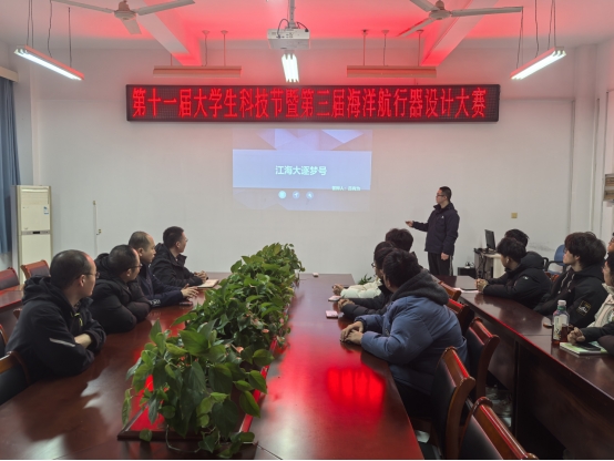 2025年12月6日下午,江苏海洋大学第十一届科技节暨海洋工程学院第三届海洋航行器设计大赛决赛于机械南309会议室圆满落幕。海洋工程学院副教授邹昶方、王志博、俞万里等教师担任决赛评委。