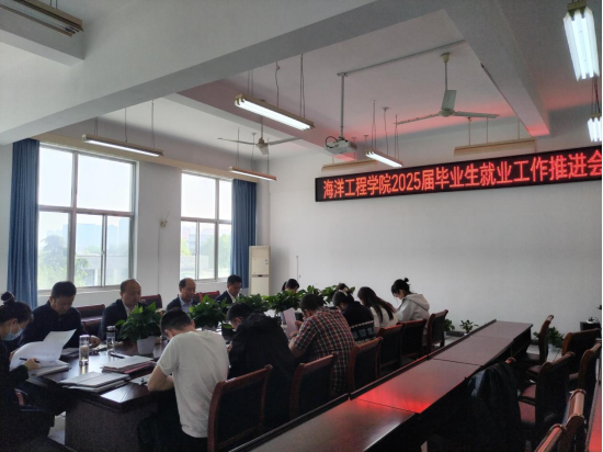 4月23日,海洋工程学院在会议室309召开2025届毕业生就业工作推进会。深入分析当前就业形势,部署下一阶段就业重点工作。学院党政领导、系主任、系支部书记、毕业班班主任、辅导员参加此次会议。