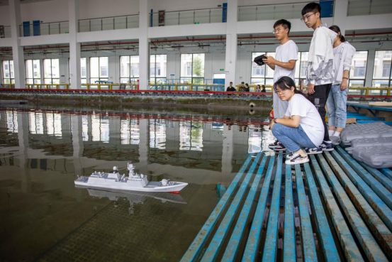 本次比赛围绕新概念创意设计、舰船模型智能航行与特种作业、海上智能感知、舰船航行虚拟仿真等科目设置11个组别。受疫情影响,大赛组织方采用虚拟现实交相融合、线上线下协同办赛的模式。除了针对评委评审环节设置云答辩,还针对模型水池竞赛环节,在江苏科技大学设置了线下赛场。