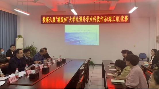 2022年10月31日晚7时,海洋工程学院于机械南楼309会议室举行校第六届“挑战杯”大学生课外学术科技作品海洋工程组竞赛。校团委书记黄吉庆、海洋工程学院院长缪泉明、电子工程学院副院长杨淼、海洋工程学院副院长黄大志、张会霞担任评委。海洋工程学院副书记王海主持竞赛。