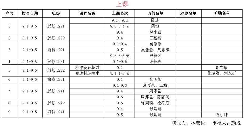 海洋工程学院学风建设督查通报2025-2026学年第1学期(第1周)