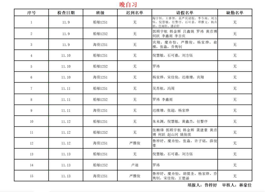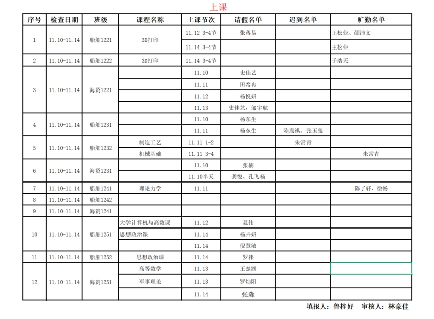 海洋工程学院学风建设督查通报2025-2026学年第1学期(第11周)
