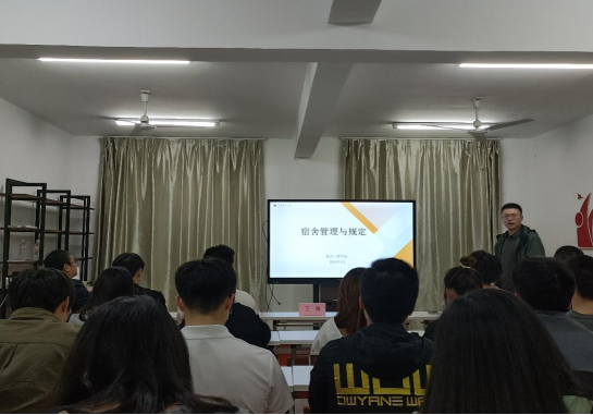 海洋工程学院辅导员陈志以“宿舍管理与规定”为主题详细解读了学校公寓公共设施及相关规定、公寓文明、卫生及秩序等内容。他提醒学生要严格遵守学校各项宿舍管理制度规定,增强时间意识、纪律意识、责任意识、安全意识,号召学生爱校如家,自立自强,不断提高自我管理、自我服务意识和能力,树立自律学习意识,争创文明宿舍,共建和谐校园。